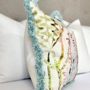 Seaglass blue fringe pastel throw pillow cover with blue brushed fringe detail , light blue cotton pillow cover, decorative seaglass accent pillow 14×14 inches