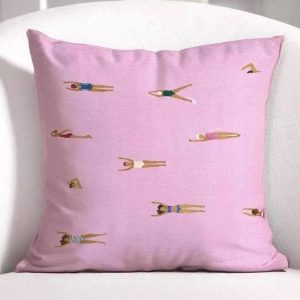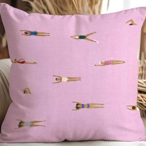 Pink Swimmers Throw Pillow, Minimalist Coastal Decor, Beach House Accent, Summer Pool Cushion, Gift for Swimmers, Modern Pastel Pillow 18×18 inches
