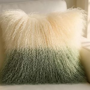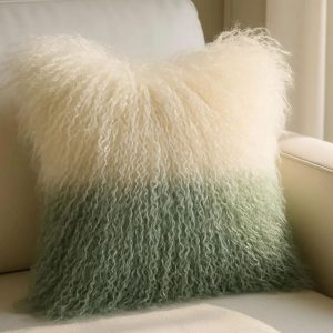 Cover and inner Mongolian Fur Pillow 45×45 Green Cream Ombre Wool Cushion Cover Curly Hair Throw Decorative Sofa Accent Natural Sheepskin