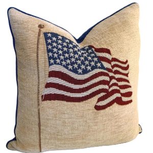 American Flag Pillow Cover: Red, White, Blue Cotton Tapestry 20×20 inches